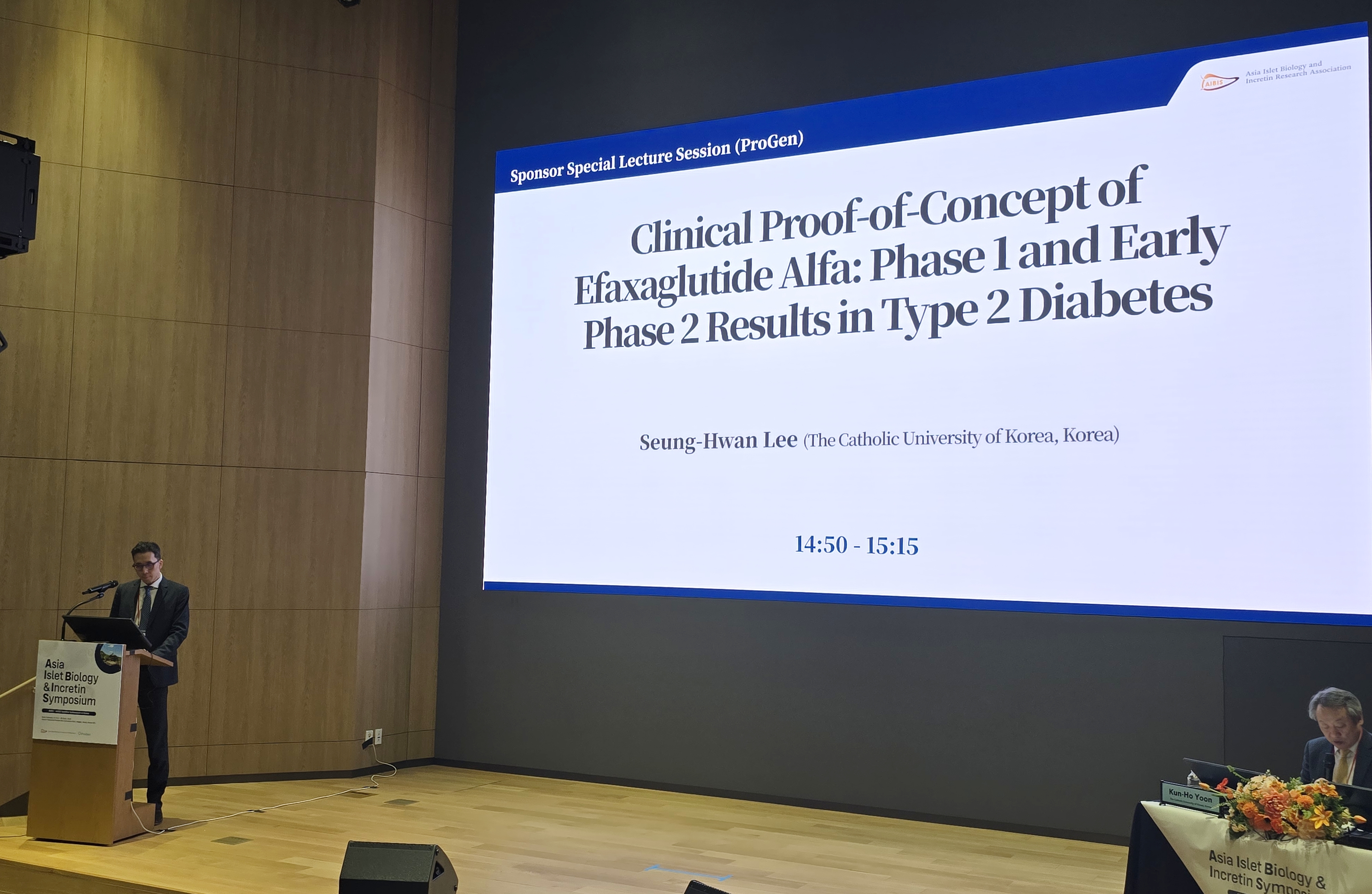 27일 열린 아시아 인크레틴·베타세포 연구 분야 국제 학술 심포지엄 AIBIS(Asia Islet Biology and Incretin Symposium)에서 프로젠은 GLP-1/GLP-2 이중작용제 PG-102의 제2형 당뇨병 대상 임상 2a상 탑라인 결과를 발표했다. GLP-1과 GLP-2를 결합한 이중작용제가 당뇨 환자 임상 결과를 공개한 것은 이번이 처음이다.