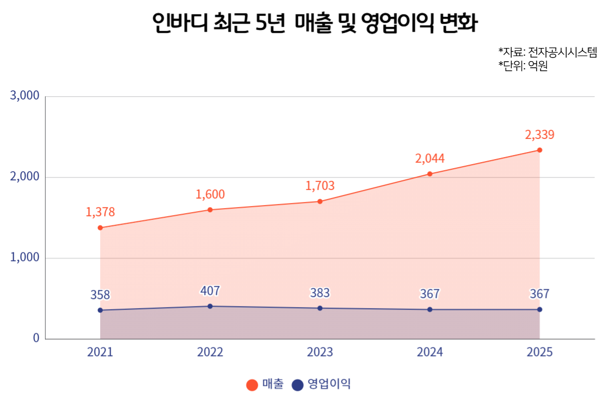 인바디가 공시한 잠정 실적에 따르면, 2025년 연결 기준 매출액은 2339억원으로 전년(2024년 2044억원) 대비 14.4% 증가했다.