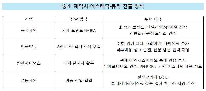 한 업계 관계자는 “제약사가 보유한 임상·품질관리 역량을 뷰티·헬스케어 분야에 접목할 경우 경쟁력을 확보할 수 있다”면서도 “단기 트렌드에 편승하기보다 중장기 파이프라인과 브랜드 전략을 병행해야 지속 가능한 수익 구조를 구축할 수 있을 것”이라고 말했다.