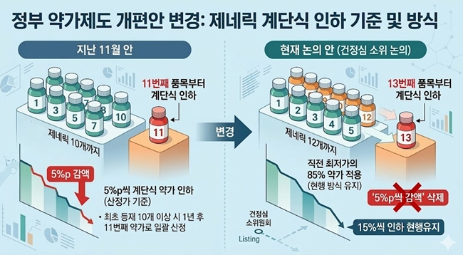 16일 업계에 따르면, 최근 건정심 소위에서 논의된 정부의 약가제도 개편안은 지난 11월과 차이가 있었다.