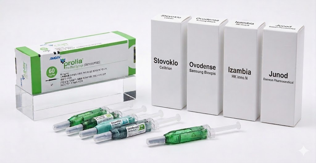 셀트리온 '스토보클로프리필드시린지'가 바이오시밀러로는 2024년 11월 첫 허가를 받았고, 이후 삼성바이오에피스 '오보덴스프리필드시린지주', 메디팁 '메디팁데노수맙프리필드시린지', HK이노엔 '이잠비아프리필드시린지'가 국내 판매 승인을 획득했다.