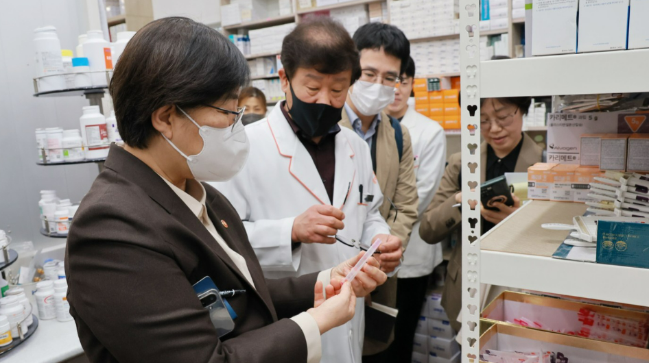 약국 찾은 정은경 장관에 "20일 뒤 약포지 재고 바닥" 호소