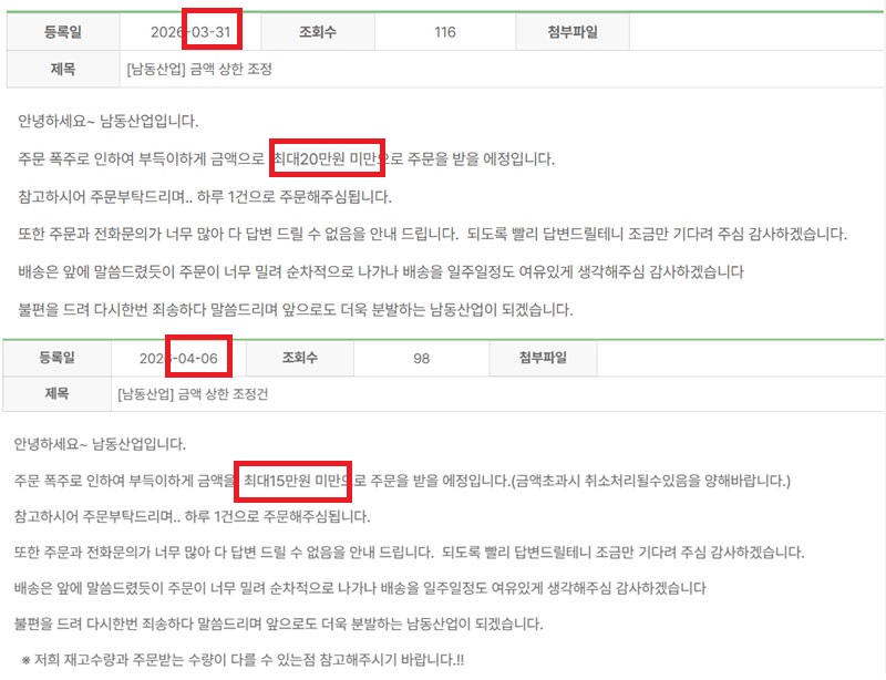 투약병 생산·유통을 담당하는 다른 업체는 최대 20만원이던 주문 상한 금액을 6일부터 15만원으로 조정했다. 금액 초과시 주문이 취소된다.