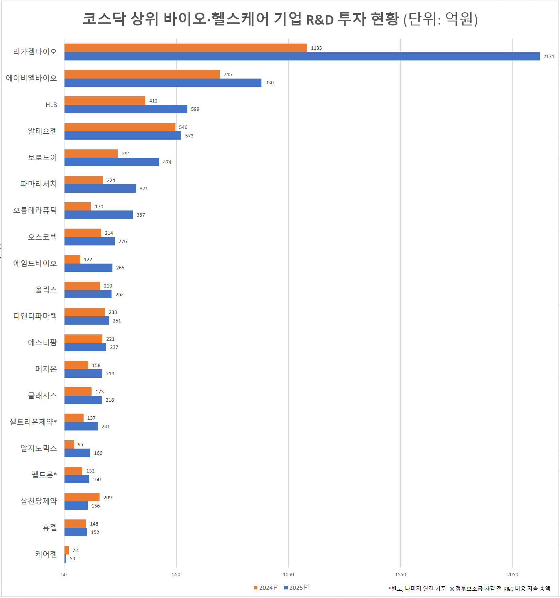 - 리가켐, 작년 R&D 비용 2171억…R&D 투자 상위 제약 유한·한미 '어깨 나란히'