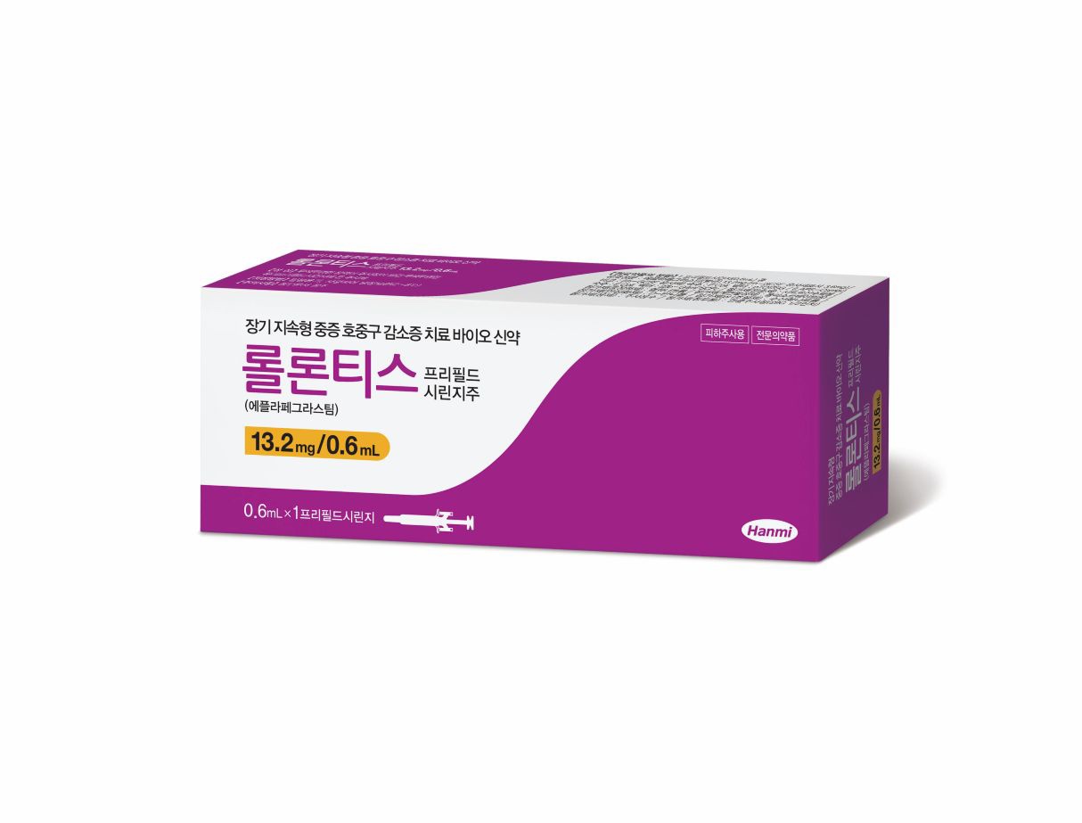 [데일리팜=이탁순 기자] 한미약품의 호중구감소증 치료 신약 ‘롤론티스(성분명 에플라페그라스팀)’가 환자 편의성을 극대화한 자동 주사기 제형으로 국내 승인을 받았다.