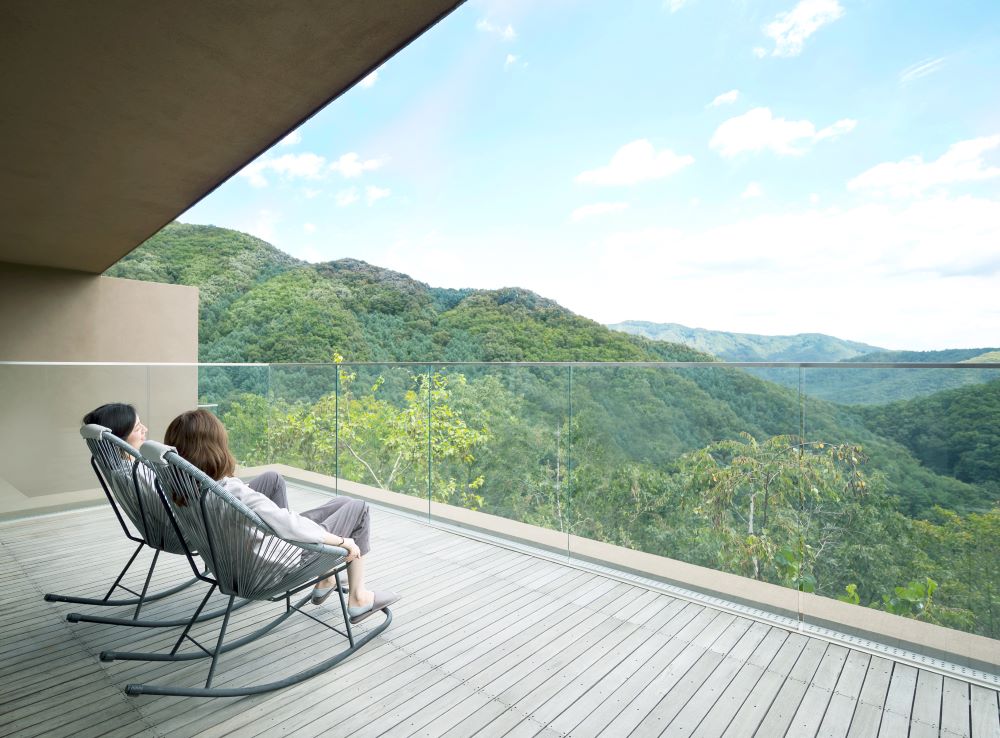 객실 역시 자연과 맞닿아 있다. 천장 통창으로 쏟아지는 햇살과 밤하늘의 별빛, 테라스 너머로 펼쳐지는 종자산 ‘치유의 숲’ 전경이 하루의 흐름을 바꾼다. 새벽의 운무, 낮의 짙은 녹음, 저녁의 고요한 풍경은 시간의 변화를 온전히 체감하게 하며, 무너진 생체 리듬을 자연스럽게 회복시킨다.