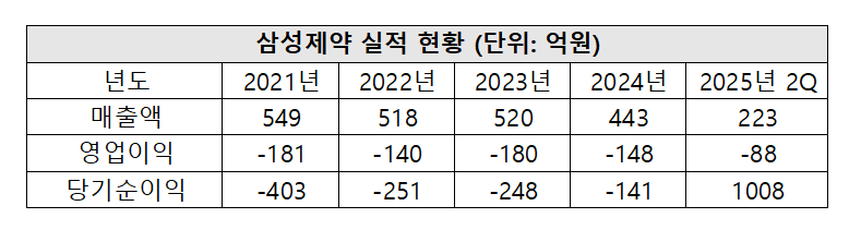 삼성제약의 신약 개발을 통한 기업가치 반등 시나리오는 흔들리고, 투자금 회수 역시 불투명해졌다. 12년째 이어지는 적자 구조 속에서 대규모 자금을 투자한 프로젝트가 자초 위기에 직면하면서 유동성 리스트도 부각되고 있다.