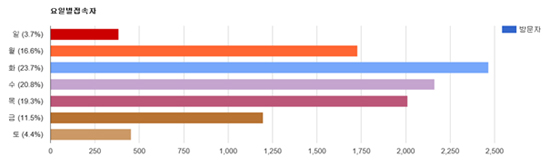 현재까지 방문자를 분석해보면 주초, 주말보다는 화요일과 수요일에 접속자가 가장 많았고, 접속 경로는 휴대폰 32%, PC 68%로 모바일 보다는 컴퓨터를 통해 강의를 수강하는 경우가 더 많았다는 게 약정원 측 설명이다.