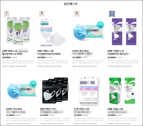 - 공적마스크 유통 제품 인터넷서 2000~4000원에 거래