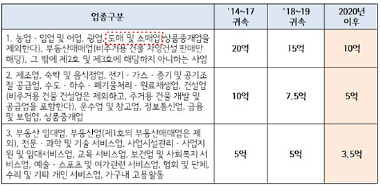 업종별 세무부담 등을 고려해 당초 예정했던 매출기준 조정을 하지 않은 것으로 알려졌다.