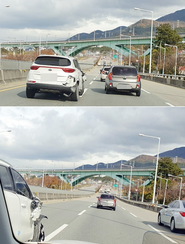 지난 11월 25일 오후 12시 10분께 부산 금곡에서 양산 동면 호포 고가도로로 출근 중이던 이 약사는 도로 위에 파손된 채 서 있는 SUV 차량 한 대를 발견했다. 사고로 인해 차량이 밀리는 상황에서 이 약사가 본 차량의 상태는 말 그대로 처참했다.