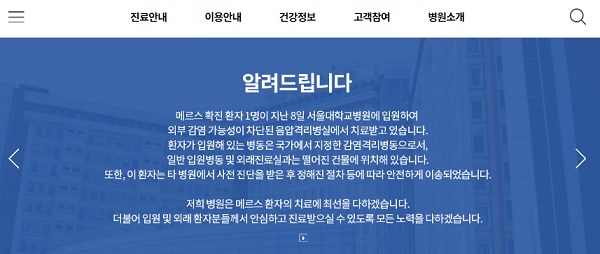 병원은 메르스 질환 정보와 증상, 감염의심 시 환자 대응법 등 홍보물을 게시했다. 특히 근무 직원들은 감염방지 마스크를 착용하고 원내 환자들을 응대하고 있다.