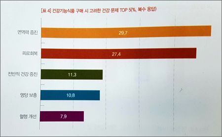이밖에 신체 자각증상을 느낀 후 직접적인 효과를 원하는 소비자 수요가 늘면서 탈모 예방, 잇몸 건강, 폐 건강 등 새로운 기능성도 주목받고 있다.