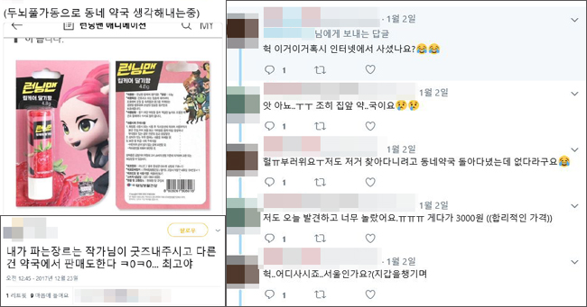 서울의 약사는 "캐릭터 상품은 유행 주기가 짧아 인기 아이템이 금방금방 변하는 게 특징"이라며 "어른들이 쭈뼛거리며 캐릭터 상품을 물어보고 사가는 모습을 보면 귀엽기도 하다. 재미있는 현상이라고 본다"고 말했다.