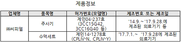 주사기는 10개 제품이 적합이었으며, 주사기의 눈금길이 기준을 미준수한 1개 제품에 대해서는 해당 제품 제조업무정지 1개월의 행정처분이 내려지고 17개 제품에 대해서는 검사 진행 중이다.