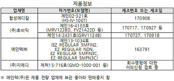 수액세트 제조업체 4곳은 청정실 전용 신발 착용하고 다른 공간으로 이동, 공조기 이상으로 차압 관리 기준 위반 등 품질관리기준를 위반한 것으로 드러났다. 적발된 업체들이 생산한 수액세트 5개 제품에 대해서도 제조업무정지 등의 행정처분과 회수·폐기명령 했고, 현재 지메디는 회수 명령에 대한 이의를 신청해 업체가 제기한 내용을 검토 중이라고 식약처는 설명했다.