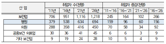 아울러 급속한 고령화, 소득 증가, 건강 관심 증대로 보건업의 취업자가 크게 증가하는 것으로 나타났다.