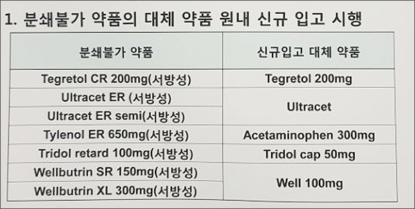약제팀은 이번 연구를 통해 산제처방 약품 중 분쇄가 불가능한 경우 중 일부의 대체 품목을 신규 입고했다고 밝혔다.