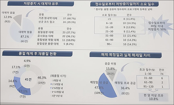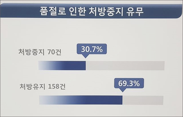 약제팀은 "약 품절시 약품 확보, 대체약품 입고 등 적절히 대응할 시간이 필요한 만큼 제약사는 사전에 의료기관이나 도매업체에 신속히 통보하는 게 중요하다"며 "특히 대체 가능한 약품이 없거나 교차 접종이 허용되지 않는 백신 등은 처방중지시 환자의 약품치료 과정에 중대한 영향을 미칠 수 있다"고 강조했다.