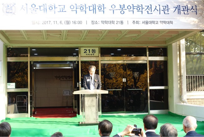 6일 오후 4시 서울약대는 21동 현관앞에서 우봉약학전시관 개관식을 개최했는데, 우봉약학전시관은 우봉 이금기 일동후디스 회장이 출연한 약학대학 발전기금으로 조성됐다.