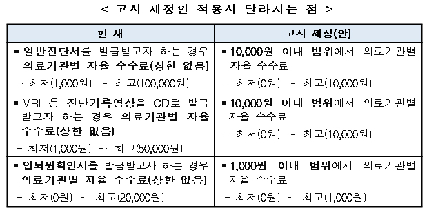 - "다빈도 일반진단서 1만원→2만원 조정 협의"