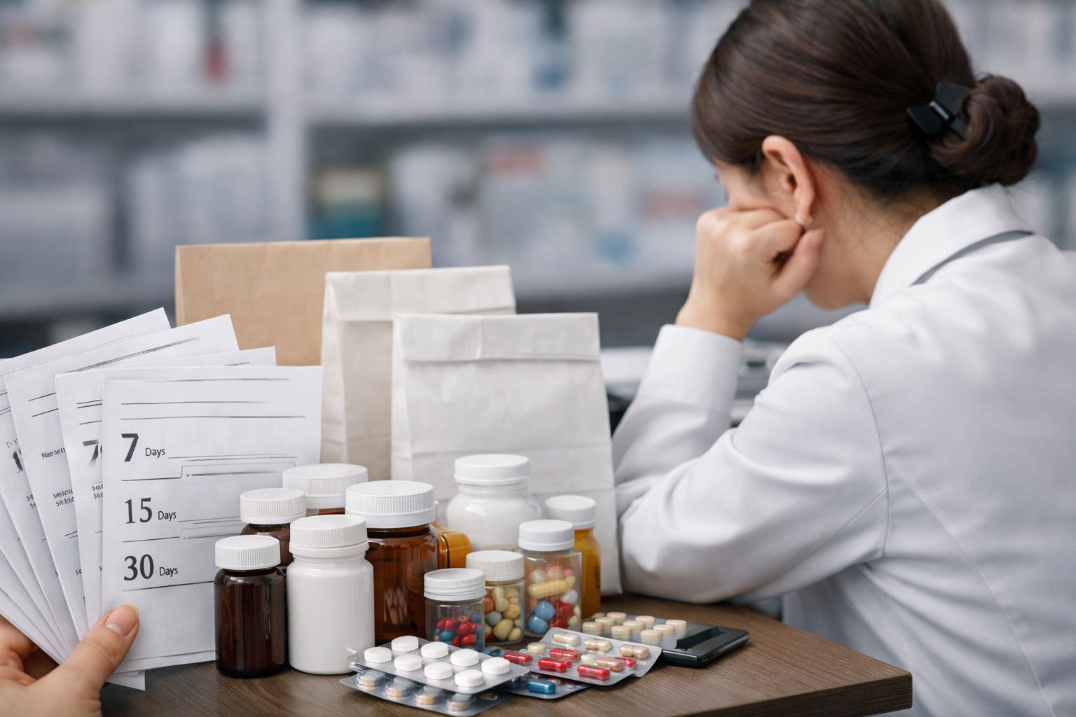 미국과 이란 간 중동 전쟁 여파로 촉발된 의료용 소모품 수급 불안이 약국 현장의 구조적 문제로 지적돼 온 장기처방 이슈와 맞물리며 정책 조정 필요성을 키우고 있다.코로나19 이후 비대면 진료 확대와 만성질환 관리 편의성 등을 이유로 3개월을 넘어 6개월, 길게는 1년 단위 처방까지 증가한 상황에서 약포지와 시럽병 등 필수 소모품 부족 사태가 현실화 되자 장기처방이 약국 조제에 여파를 미치는 변수 중 하나로 부각되는 모습이다.약국 현장에서는 장기처방이 처방의약품을 넘어 이번에는 약국 필수 소모품의 수급 위기를 증폭시키는 요인이 될 수 있다고 지적한다. 공급량이 부족한 상황에서 조제량이 한 번에 집중되는 장기처방 구조상 약국에서는 제한된 약포지, 투약병 등 소모품 재고를 급격히 소진시키고 이것이 곧 전반적인 수급에 영향을 미칠 수 있기 때문이다. 문전약국의 한 약사는 “당장 약포지와 시럽병을 구하지 못해 조제에 차질이 발생하는 상황에서 6개월 이상 장기처방은 물리적으로 감당하기 어렵다”며 “이 같은 구조가 유지될 경우 수급난은 더 심화될 수밖에 없다”고 토로했다.이 같은 문제의식은 정부 공식 논의 테이블에서도 제기됐다. 지난 6일 열린 ‘중동 전쟁 대응 보건의약단체 제2차 회의’에서 대한약사회는 소모품 수급 불안 상황을 공유하며 처방기간 조정 필요성을 공식 건의했다.약사회는 현 상황을 고려해 한시적으로 처방 기간을 2~3개월 수준으로 단축하는 방안을 제안했다.권영희 대한약사회장은 “한 처방전에 여러 의약품이 포함되는 경우가 대부분인 데다 장기처방은 고령 환자 비율이 높은 만큼 현 상황을 고려해 원포장으로 조제를 돌린다 해도 사실상 복약 관리가 쉽지 않다”며 “장기처방은 이번 소모품 수급 문제 뿐만 아니라 의약품 품절 사태에도 영향을 미치고 이를 장기·심화시키는 요인이란 점을 지적했다”고 말했다. 이어 “약포지는 약국관리료에 포함돼 별도 보상이 없는 구조지만 현재처럼 수급 불안으로 가격이 상승하는 상황은 사실상 국가적 재난에 준하는 만큼 보전이나 지원이 필요하다"면서 "장기적으로는 의약품관리료 정 등도 검토해 봐야 한다"고 강조했다.약사회는 내부 회원 약국들에 장기처방에 대한 대응 지침을 전달하기도 했다. 이광민 부회장은 “만성질환 환자의 장기처방 조제 시 1포화 조제를 자제하고, 환자 설명을 통해 최대한 원포장 단위로 조제해 달라”며 “소아과 처방 역시 가능하다면 시럽제 대신 정제·캡슐 등 다른 제형을 우선 검토해 달라고 의료계에 요청할 계획”이라고 밝혔다.정부, 의료기관에 장기처방 자제 요구…현장 협조 요청 병행정부도 대응 수위를 높이며 공급 안정과 사용 절감을 동시에 추진하는 투트랙 대응에 나섰다.보건복지부는 7일 대한병원협회와 대한의사협회, 대한약사회에 '의료제품 수급안정 관련 협조 요청' 공문을 발송하고 의료기관과 약국에 협조를 공식 요청했다. 이는 지난 6일 정부와 12개 보건의약단체가 선언한 ‘수급 안정 협력’의 후속 조치다. 우선 의료기관에는 환자 치료에 지장이 없는 범위 내에서 장기 처방을 자제하고 시럽제 대신 정제·캡슐 등 대체 제형 처방을 적극 검토해 달라고 요청했다.약국에는 만성질환 약제 등에 대한 과도한 일 단위 분할 조제를 줄이고 포장재 사용을 최소화하는 등 소모품 절약 노력을 당부했다.이는 처방과 조제 단계에서 발생하는 소모품 사용량 자체를 줄이지 않고서는 근본적인 수급 안정이 어렵다는 판단에 따른 조치로 풀이된다.정은경 복지부 장관은 최근 약국을 직접 방문해 시럽병과 약포지 수급 상황을 점검하며 현장 대응에 나서는 한편 7일 진행된 ‘의료제품 수급 대응’ 관계 부처 합동 브리핑에서 약국 소모품 생산, 유통을 집중 관리하겠다는 방침을 밝히기도 했다. 정 장관은 “약포지와 시럽병 가격 상승과 수급 불안을 확인했다”며 “원료 부족과 유통 문제를 함께 점검하고 있다”고 말했다. 이어 “나프타 등 원료 공급 문제 해결을 위해 산업통상자원부와 협력해 우선 공급 방안을 논의 중이다. 약국 조제용 소모품 수급 문제를 집중 관리하겠다”면서 “불필요한 가수요로 유통 왜곡이 발생하지 않도록 현장의 협조도 중요하다”고 강조했다.