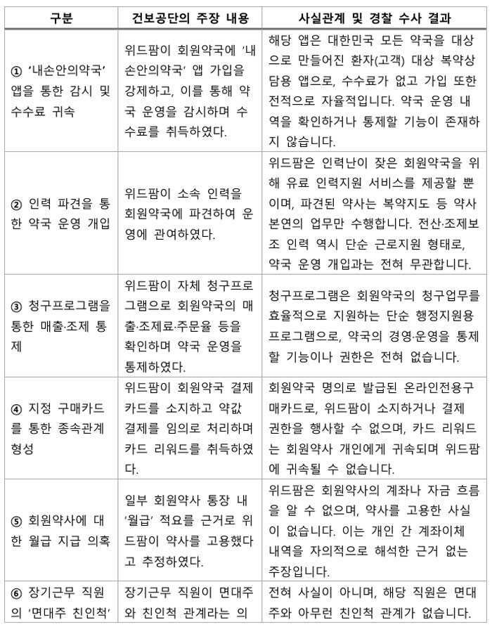 ´ëÇ¥ÀûÀÎ ÀÇȤÀÌ 'À§µåÆÊÀÌ È¸¿ø¾à±¹¿¡ '³»¼Õ¾ÈÀǾ౹' ¾Û °¡ÀÔÀ» °­Á¦ÇØ ¾à±¹ ¿î¿µÀ» °¨½Ã, ¼ö¼ö·á¸¦ ÃëµæÇß´Ù'´Â ³»¿ëÀÌ´Ù. ÇÏÁö¸¸ ³»¼Õ¾ÈÀǾ౹Àº ȯÀÚ¿Í ¾à±¹°£ Ä¿¹Â´ÏÄÉÀÌ¼Ç Ç÷§ÆûÀ¸·Î, °¡¸Í ¾à±¹ »Ó¸¸ ¾Æ´Ï¶ó Àüü 2¸¸5000°³ ¾à±¹ÀÌ »ç¿ëÇÒ ¼ö ÀÖ´Â ¹«·á ÇÁ·Î±×·¥À̶ó´Â ¼³¸íÀÌ´Ù.