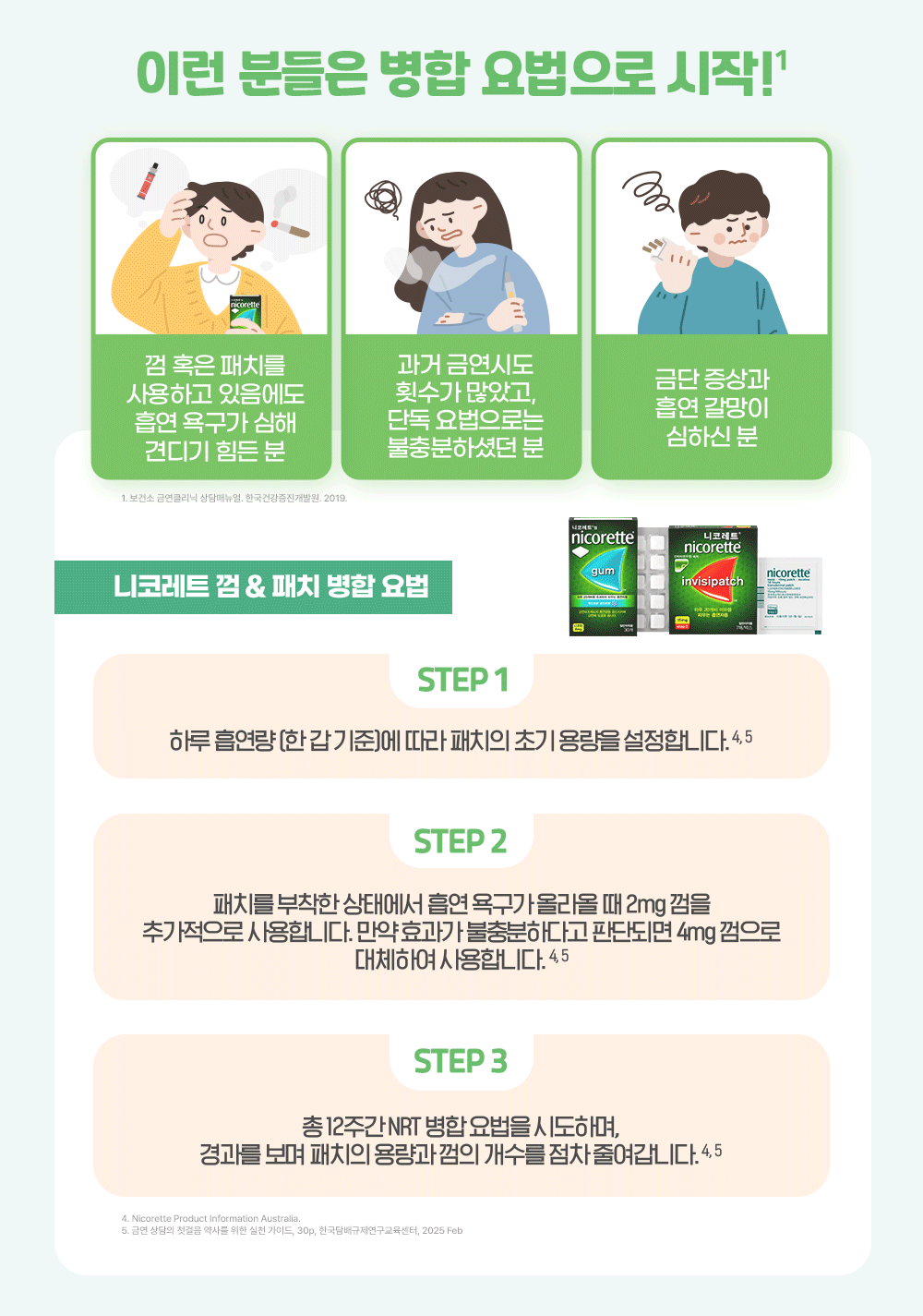 ÇÏ·ç Èí¿¬·®ÀÌ 1°© ÀÌÇÏÀÏ °æ¿ì, ´ÏÄÚ·¹Æ® ²Àº __mg ¿ë·®À¸·Î, ´ÏÄÚ·¹Æ® ÆÐÄ¡´Â __mg ¿ë·®À¸·Î ½ÃÀÛÇÒ ¼ö ÀÖ´Ù.
