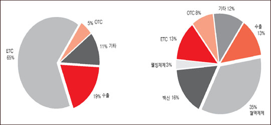 'ETC+OTC' ¸ÅÃâ ±¸Á¶´Â Á¾±Ù´çÀÌ 94%¸¦ Á¡À¯ÇØ °¡Àå ³ô¾Ò´Ù. À̾î À¯ÇѾçÇà 73%, Çѹ̾àǰ 70%, µ¿¾ÆÁ¦¾à 59% ¼øÀ¸·Î Á¶»çµÆ´Ù.