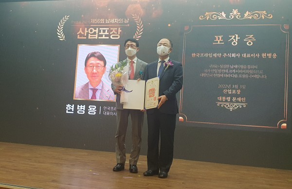 Çѱ¹ÇÁ¶óÀÓÁ¦¾àÀº ¼º½Ç ³³¼¼¿Í »çȸÀû ±â¾÷À¸·Î Ȱµ¿ µîÀÇ °ø·Î¸¦ ÀÎÁ¤¹Þ¾Æ »ê¾÷Æ÷Àå ´ëÅë·É»óÀ» ¼ö»óÇß´Ù°í ¼³¸íÇß´Ù.