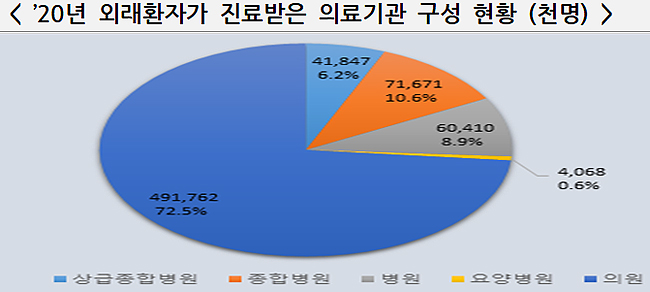 2020³â ¿Ü·¡È¯ÀÚÀÇ 72.5%´Â ÀÇ¿øÀ» ÀÌ¿ëÇßÀ¸¸ç, ±× ¿Ü¿¡ Á¾ÇÕº´¿ø(10.6%) º´¿ø(8.9%), »ó±ÞÁ¾ÇÕº´¿ø(6.2%), ¿ä¾çº´¿ø(0.6%) ¼øÀ¸·Î ÀÌ¿ëÇß´Ù. À̵éÀÇ Áø·áºñ´Â ÀÇ¿ø 52.8%, »ó±ÞÁ¾ÇÕº´¿ø 18.8%, Á¾ÇÕº´¿ø 17.7%, º´¿ø 9.1%, ¿ä¾çº´¿ø 0.7% ¼øÀ¸·Î ¸¹¾Ò´Ù.