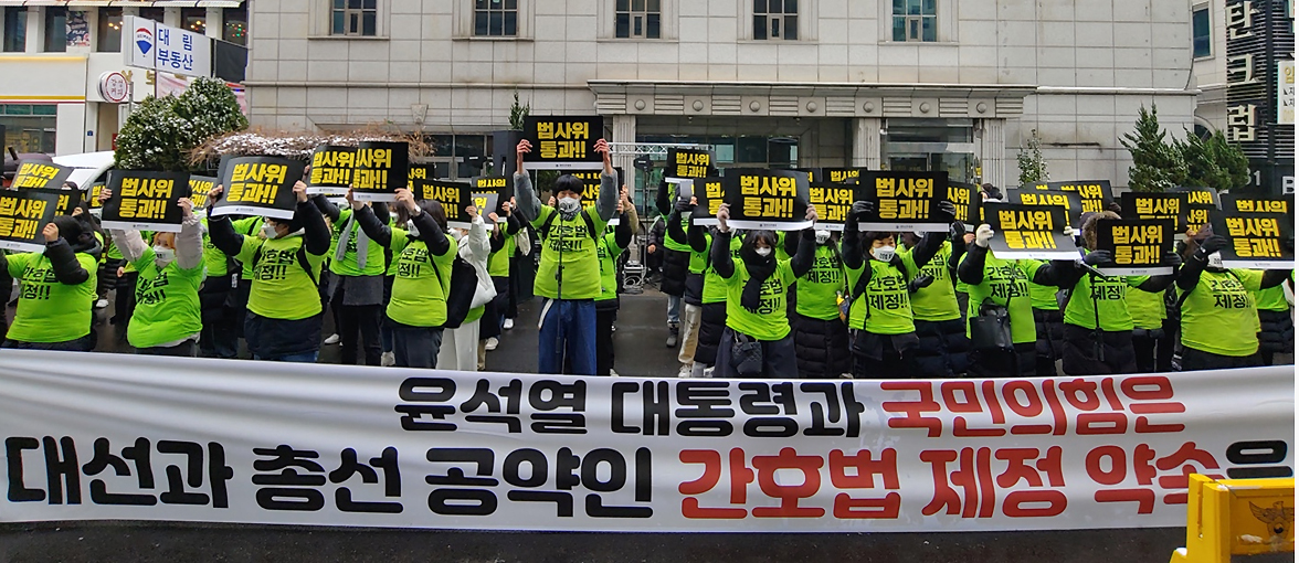 °£È£»ç¿Í °£È£¹ý ¹ü±¹¹Î¿îµ¿º»ºÎ´Â 21ÀÏ ¿©Àǵµ ±¹¹ÎÀÇÈû ´ç»ç ¾Õ¿¡¼­ °£È£¹ý Á¦Á¤ Ã˱¸ ¼ö¿ä Áýȸ¸¦ ¿­°í °£È£¹ý Á¦Á¤ ¾à¼Ó ÀÌÇàÀ» Ã˱¸ÇÏ¸ç ±¹¹ÎÀÇÈûÀ» ¾Ð¹ÚÇß´Ù.