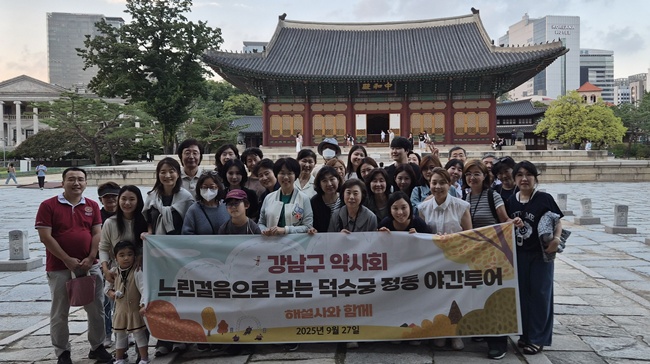 [µ¥Àϸ®ÆÊ=±èÁöÀº ±âÀÚ] ¼­¿ï °­³²±¸¾à»çȸ(ȸÀå ±èÇüÁö) ¹®È­È«º¸À§¿øÈ¸(ºÎȸÀå ÃÖ°æ¾Æ, À§¿øÀå ÀÌÈñÁÖ)´Â Áö³­ 27ÀÏ È¸¿ø ¾à»çµé°ú ¹®È­Å½¹æ ¿ª»ç±âÇà ù ¹øÂ° ÇÁ·Î±×·¥À¸·Î ¡®´À¸°°ÉÀ½À¸·Î º¸´Â ´ö¼ö±Ã Á¤µ¿ ¾ß°£Åõ¾î¡¯¸¦ ÁøÇàÇß´Ù°í ¹àÇû´Ù.