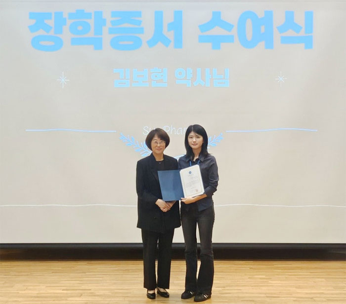 º» Çà»ç¿¡ ¾Õ¼­ »ïÀ°¾àÇÐ ÀåÇÐÀç´Ü ±èº¸Çö ÀÌ»çÀåÀº ¾à´ë»ý 7¸í¿¡°Ô ÀåÇÐÁõ¼­¸¦ ¼ö¿©Çß´Ù. ±è ÀÌ»çÀåÀº "ÀçÇлýµéÀÌ ´õ Å« ºñÀüÀ» ǰ°í »çȸ¿¡ ³ª¾Æ°¥ ¼ö Àֱ⸦ ±â´ëÇÑ´Ù"°í °Ý·ÁÇß´Ù.