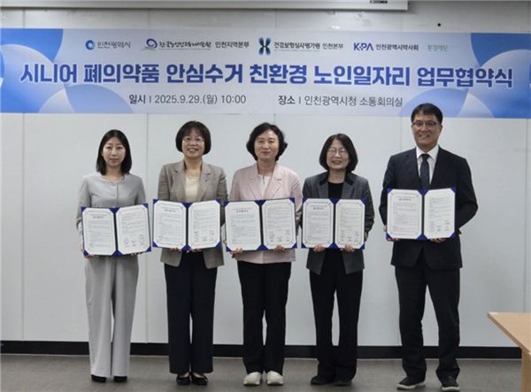 [µ¥Àϸ®ÆÊ=±èÁöÀº ±âÀÚ] ÀÎõ±¤¿ª½Ã¾à»çȸ(ȸÀå À±Á¾¹è)´Â Áö³­ 9¿ù 29ÀÏ ÀÎõ±¤¿ª½Ãû û»ç¿¡¼­ ÀÎõ±¤¿ª½Ã, °Ç°­º¸Çè½É»çÆò°¡¿ø ÀÎõº»ºÎ, ȯ°æÀç´Ü, Çѱ¹³ëÀÎÀη°³¹ß¿ø ÀÎõº»ºÎ¿Í ÇÔ²² ¡®ÆóÀǾàǰ ¾È½ÉºÐ¸®¼ö°Å ³ëÀÎÀÏÀÚ¸® È®´ë ¾÷¹«Çù¾à¡¯À» ü°áÇß´Ù°í ¹àÇû´Ù.