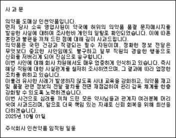 ÀÎõ¾àǰ, ÀÚ»ç ȨÆäÀÌÁö µî¿¡ »ç°ú¹® ¿Ã·Á