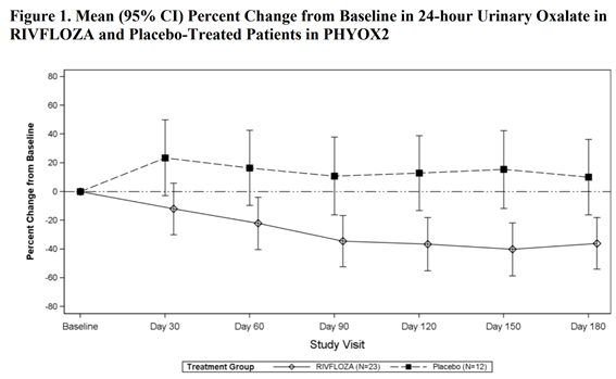 ÁÖ¿ä À¯È¿¼º Æò°¡º¯¼ö´Â 24½Ã°£ ¿ä ¿Á»ì»ê ¹è¼³·®(AUC24-hour Uox)ÀÇ ±âÀú¼± ´ëºñ º¯È­À²(18¼¼ ¹Ì¸¸Àº BSA º¸Á¤)ÀÇ ¸éÀû(AUC, Days 90~180)À̾ú´Ù. RIVFLOZA±ºÀÇ LS Æò±Õ AUC24-hour Uox´Â -3486(95% CI: -5025, -1947)À̾ú°í, À§¾à±ºÀº 1490(95% CI: 781, 3761)À̾ú´Ù. µÎ ±º °£ Â÷ÀÌ´Â 4976(95% CI: 2803, 7149; p<0.0001)À̾ú´Ù.