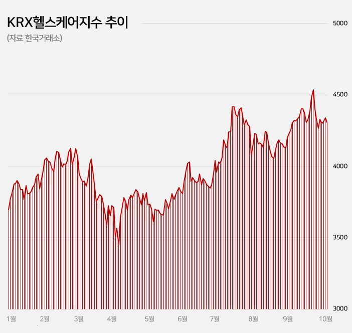 Áõ½Ã Àü¹ÝÀÇ È£Á¶ ¼Ó¿¡¼­ Á¦¾à¹ÙÀÌ¿À ¾÷Á¾µµ µ¿¹Ý °­¼¼¸¦ º¸¿´´Ù. À̳¯ KRXÇコÄɾîÁö¼ö´Â 4306.54·Î ¸¶°¨, ¿¬ÃÊ ´ëºñ 16.5% »ó½ÂÇÑ °ÍÀ¸·Î ³ªÅ¸³µ´Ù.