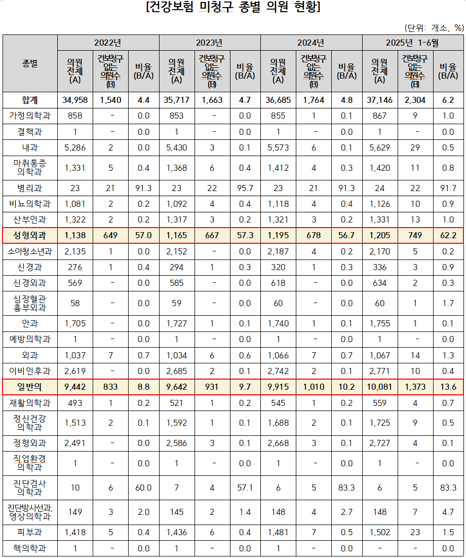 º¸Çè û±¸°¡ ÀüÇô ¾ø´Â ÀÇ¿øµéÀº ¼ºÇü¿Ü°ú¿Í ÀϹÝÀǰ¡ ´ëºÎºÐÀ» Â÷ÁöÇß´Ù. ¹Ì¿ëÀ̳ª ¼ºÇü ½Ã¼ú¸¸À» Àü¹®À¸·Î ¿î¿µÇÏ´Â °ÍÀ¸·Î ÃßÁ¤Çß´Ù.