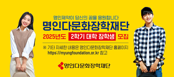 [µ¥Àϸ®ÆÊ=¼ÕÇü¹Î ±âÀÚ] ¸íÀÎÁ¦¾à(ȸÀå ÀÌÇà¸í)ÀÇ '¸íÀÎ ´Ù¹®È­ÀåÇÐÀç´Ü'ÀÌ 2025³âµµ 2Çб⠴ٹ®È­ ´ëÇÐ ÀåÇлýÀ» ¸ðÁýÇÑ´Ù. Àç´ÜÀº Áö±Ý±îÁö ÃÑ 283¸íÀÇ ´Ù¹®È­ ÀåÇлý¿¡°Ô 6¾ï8200¸¸¿øÀÇ ÀåÇбÝÀ» ¼ö¿©ÇÑ ¹Ù ÀÖ´Ù.