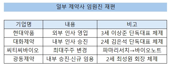[µ¥Àϸ®ÆÊ=À̼®ÁØ ±âÀÚ] ÀϺΠÁ¦¾à»ç ÀÓ¿øÁøÀÌ ÀçÆíµÇ°í ÀÖ´Ù. ¿ÜºÎ ÀÎ»ç ¿µÀÔ, ³»ºÎÀÚ ½ÂÁø µî ¹æ½ÄÀº ´Ù¾çÇÏ´Ù. ±â¾÷º° °æ¿µ »ö±òÀÌ ¶Ñ·ÇÇÏ°Ô ¹Ý¿µµÇ°í ÀÖ´Ù´Â Æò°¡´Ù.