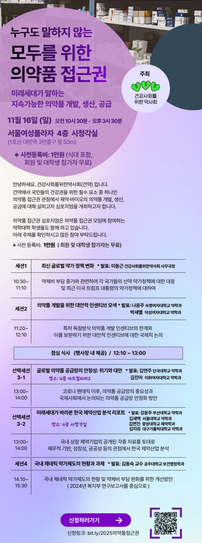 Âü¿©½ÅûÀº 12ÀϱîÁö ¿Â¶óÀÎ ½Åû¼­(ÀÛ¼º: bit.ly/2025ÀǾàǰÁ¢±Ù±Ç)¸¦ ÅëÇØ °¡´ÉÇÏ´Ù. ÀÚ¼¼ÇÑ ³»¿ëÀº °Ç¾à »ç¹«½Ç(ÀüÈ­: 02-523-9752, À̸ÞÀÏ: kpkyp@naver.com)·Î ¹®ÀÇÇÏ¸é µÈ´Ù.