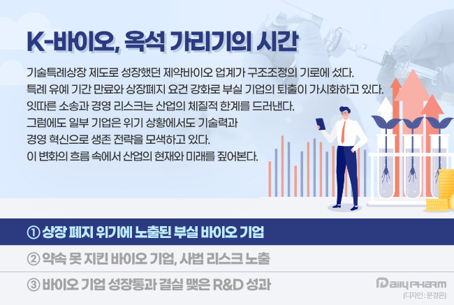 ¹ÙÀÌ¿À ¾÷°è¿¡¼­´Â »óÀåÆóÁö¿Í °ü¸®Á¾¸ñ ÁöÁ¤ ±â¾÷ÀÌ À̾îÁö¸é¼­ »ê¾÷ Àü¹ÝÀÇ ¿Á¼® °¡¸®±â°¡ º»°ÝÈ­Çϰí ÀÖ´Ù´Â ºÐ¼®ÀÌ ³ª¿Â´Ù. ƯÈ÷ R&D ¼º°ú Áö¿¬°ú À繫 ºÒ¾È µîÀ¸·Î ÀÌ¹Ì ½ÃÀå ÅðÃâ À§±â¿¡ ³õÀÎ ±â¾÷ÀÌ ¸¹Àºµ¥´Ù ±ÝÀ¶´ç±¹ÀÇ »óÀåÆóÁö ¿ä°Ç °­È­ µîÀÌ °ãÄ¡¸é¼­ ÀÌ °°Àº È帧ÀÌ ¾ÕÀ¸·Î ´õ¿í °¡ÆÈ¶óÁú °ÍÀ̶ó´Â °Ô Àü¹®°¡µéÀÇ ½Ã°¢ÀÌ´Ù.