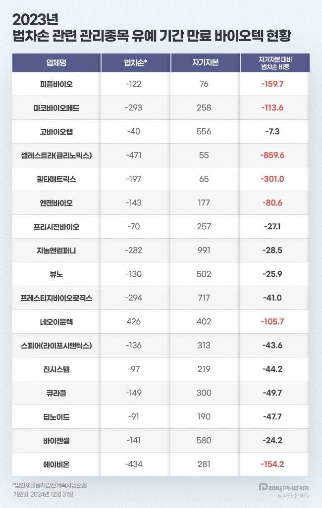 ÀÌµé ±â¾÷ Áß ÀÌ¹Ì °ü¸®Á¾¸ñÀ¸·Î ÁöÁ¤µÈ ¼¿·¹½ºÆ®¶ó¸¦ Á¦¿ÜÇϰí ÇÇÇùÙÀÌ¿À, ·Ñ¸µ½ºÅæ, ÄöŸ¸ÅÆ®¸¯½º, ¿£Á¨¹ÙÀÌ¿À, ³×¿ÀÀ̹ÃÅØ, ¿¡À̺ñ¿Â µîÀÌ 6°³ ¾÷ü°¡ Áö³­ÇØ ±âÁØ ÀÚ±âÀÚº» ´ëºñ ¹ýÂ÷¼Õ ºñÀ²ÀÌ 50%¸¦ ÃʰúÇß´Ù. 2023³â Ư·Ê»óÀå °ü¸®Á¾¸ñ À¯¿¹ ±â°£ÀÌ ¸¸·áµÈ ¹ÙÀÌ¿ÀÅØ Áß Àý¹Ý¿¡ °¡±î¿î ¾÷ü°¡ À̵ëÇØ ¹ýÂ÷¼Õ ºñÁß 50%¸¦ ³Ñ±ä °ÍÀÌ´Ù.