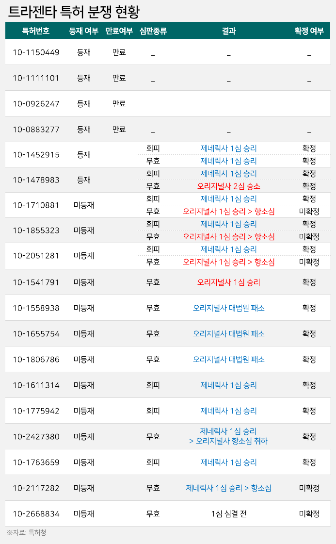 ³²Àº ºÐÀïÀº 5°ÇÀ¸·Î, ¿©±â¼­µµ Á¦³×¸¯»çµéÀÌ À¯¸®ÇÑ °íÁö¸¦ Á¡Çϰí ÀÖ´Â »óȲÀÌ´Ù. Á¦ÇüƯÇã 3°ÇÀ» µÑ·¯½Ñ ´ë¿øÁ¦¾à°ú º£¸µ°ÅÀΰÖÇÏÀÓ °£ ƯÇ㹫ȿ ¼Ò¼Û 3°Ç°ú, ¿ëµµÆ¯Ç㸦 µÑ·¯½Ñ Ç×¼Ò½É 1°Ç µîÀÇ ÃÖÁ¾ ÆÇ°áÀÌ ³ª¿À¸é Æ®¶óÁ¨Å¸ ¹ÌµîÀç Æ¯Çã ºÐÀïÀÌ »ç½Ç»ó ¸¶¹«¸®µÉ Àü¸ÁÀÌ´Ù.