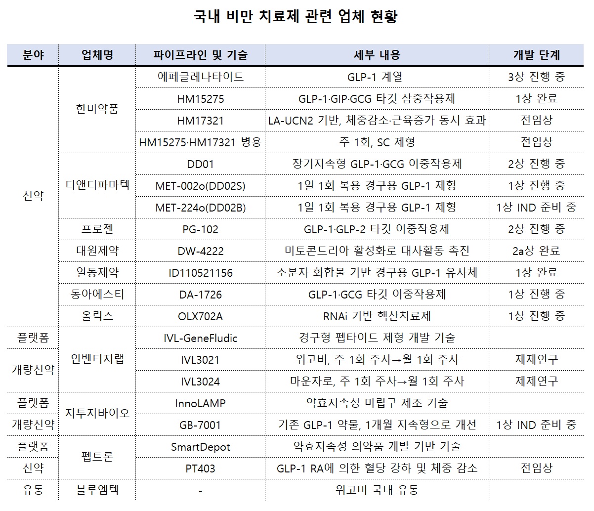 Çѹ̾àǰÀº À̿ܿ¡µµ ¡ãGLP-1¡¤Àν¶¸° ºÐºñ ÀÚ±Ø ÆéŸÀ̵å(GIP)¡¤±Û·çÄ«°ï(GCG)À» µ¿½Ã¿¡ Ÿ±êÇÏ´Â Â÷¼¼´ë »ïÁßÀÛ¿ëÁ¦ 'HM15275' ¡ãüÁß°¨¼Ò¡¤±ÙÀ°Áõ°¡ È¿°ú¸¦ ³»´Â UCN2 ±â¹Ý 'HM17321' ¡ãHM15275¿Í HM17321 º´¿ë¿ä¹ý µî ºñ¸¸¡¤´ë»çÁúȯ ÆÄÀÌÇÁ¶óÀÎÀ» º¸À¯ ÁßÀÌ´Ù. Çѹ̾àǰÀº ±×·ì Â÷¿ø¿¡¼­ ºñ¸¸¡¤´ë»çÁúȯÀ» ½Å¼ºÀå µ¿·ÂÀ¸·Î »ï°í Â÷º°È­ÇÑ ¸ÂÃãÇü Æ÷Æ®Æú¸®¿À¸¦ ±¸ÃàÇÏ´Â µ¥ ÈûÀ» ½ñ°í ÀÖ´Ù.