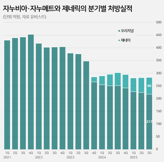 ¶ÇÇÑ DPP-4 ¾ïÁ¦Á¦ ½ÃÀåÀº Æ÷½Ã°¡¡¤ÀÚµð¾Ó µî SGLT-2 ¾ïÁ¦Á¦ °è¿­ ´ç´¢º´ Ä¡·áÁ¦°¡ µîÀåÇÑ ÀÌÈÄ·Î Àüü 󹿽ÇÀûÀÌ °¨¼Ò¼¼´Ù. ÀÌ·± »óȲ¿¡¼­ ¹«´õ±â·Î µîÀåÇÑ ÀÚ´©ºñ¾Æ¡¤ÀÚ´©¸ÞÆ® Á¦³×¸¯ÀÌ Ä¡¿­ÇÑ °æÀïÀ» ÆîÄ¡¸é¼­ ±â´ë¿¡ ¹ÌÄ¡Áö ¸øÇÏ´Â ¼ºÀûÀ» ³»°í ÀÖ´Ù´Â ºÐ¼®ÀÌ´Ù.