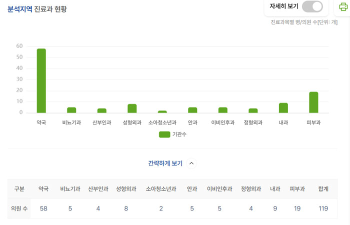 µ¥Àϸ®ÆÊÀÌ ÀÇ¿ø¡¤¾à±¹ ÀÔÁö ¹× »ó±Ç ºÐ¼® Áöµµ µ¥Àϸ®ÆÊ¸Ê(¹Ù·Î°¡±â)À» ÅëÇØ Àΰ赿ÇàÁ¤º¹Áö¼¾ÅÍ ¹Ý°æ 1km ³» ÀÇ¿ø°ú ¾à±¹ ÇöȲÀ» »ìÆìº» °á°ú 119°³ ÀÇ¿ø°ú 58°³ ¾à±¹ÀÌ ¿î¿µ ÁßÀÎ °ÍÀ¸·Î È®ÀεƴÙ.