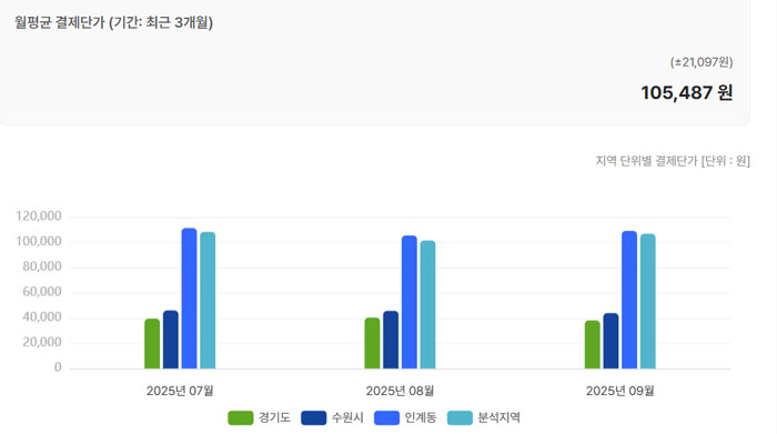 ÃÖ±Ù 6°³¿ù ¸ÅÃâ Áõ°¡À²Àº °æ±âµµ Æò±Õ ´ëºñ ³ôÀº °ÍÀ¸·Î Áý°èµÆ´Ù. ÃÖ±Ù 3°³¿ù ÀÇ¿ø´ç ¿ùÆò±Õ °áÁ¦°Ç¼ö´Â 831°Ç, °áÁ¦´Ü°¡´Â 10¸¸5487¿øÀ̾ú´Ù. ´Ù¸¸ 2¸¸7614¿ø ¹Ì¸¸ °Å·¡°¡ 55.2%¸¦ Â÷ÁöÇß´Ù.