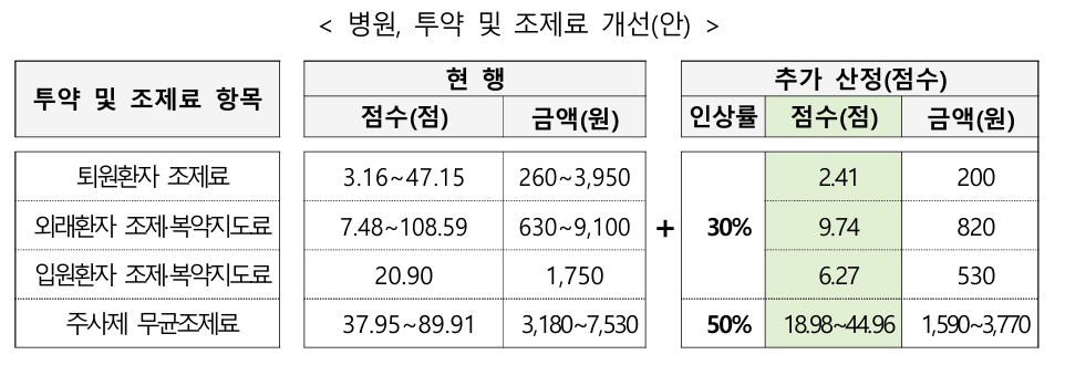¸ÕÀú º´¡¤ÀÇ¿ø ȯ»êÁö¼ö Àλó·ü Áß 0.1%¸¦ Ȱ¿ëÇØ ÀÇ¿ø ÁøÂû·á(190¾ï¿ø), º´¿ø Åõ¾à ¹× Á¶Á¦·á(325¾ï¿ø)¿¡ ´ëÇÑ ÀçÁ¤ÅõÀÔÀÌ °áÁ¤µÊ¿¡ µû¶ó º´¿ø±ÞÀº »ó´ë°¡Ä¡ ¿¬°è ÅõÀÔ ÀçÁ¤ ¹× ÁßÁõÁø·á °ü·Ã Ç׸ñÀ» °í·ÁÇØ Åõ¾à ¹× Á¶Á¦·á 4°³ Ç׸ñÀ» 30~50% ÀλóÇÑ´Ù.
